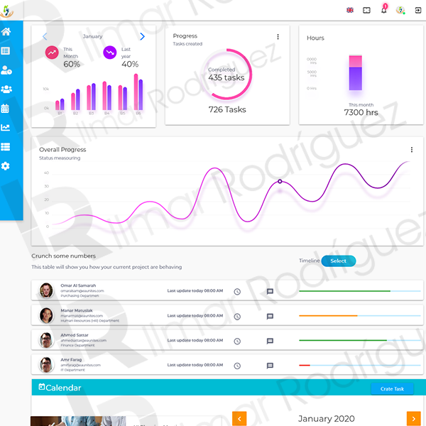 Planificación y control de proyectos, estadísticas, administración de recursos, manejo de costos. Creación de interfaces gráficas.