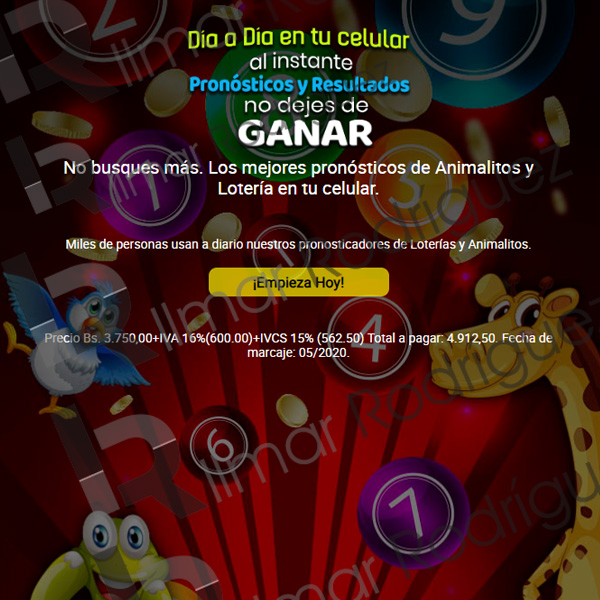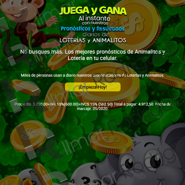 Diseño de Landing Page responsive con diseño asociado al contenido del servicio Todo en Deportes, Lo mejor en Loterías y animalitos, Horóscopo, Zgnos del Zodiaco, Compatibilidad, Tu Horóscopo Chino, entre otros.